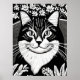 Poster Tabby Cat Surarcado com Flores