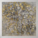 Tableau No. 2/Composition No. VII de Piet Mondrian é uma peça vintage do cubismo abstrato que apresenta linhas pretas interligadas e planos de cor em tons de ocre e cinza.