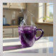 Trabalho de arte de um copo feito de cristal ametista. Uma pintura cativante que comemora o luxo silencioso de um momento iluminado pelo sol. Esta peça elegante apresenta uma caneca de vidro colorida com ametista facetada, cheia de uma bebida quente e fumegante, captando a luz da manhã com brilho deslumbrante. A ascensão de vapor suave da taça adiciona um toque de charme, enquanto os destaques nítidos e sombras profundas no crio de contratop dão uma sensação de realismo. O fundo é uma cozinha aconchegante banhada à luz natural, convidando um sentimento de paz e calor. Esta trabalho de arte é uma adição perfeita para aqueles que apreciam arte que captura a beleza diária de uma manhã tranquila, perfeita para adicionar um toque de admiração e beleza a qualquer sala. Esta arte pode ser personalizada, impressa e ou baixada.