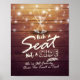 Letreiro de Casamento Escolha um Assento Não um Lado - Letra Elegante, Taças de Champanhe Vintage e Luzes de Corda em Fundo de Madeira Rústica.