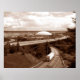 Fotografia de Sarah McTernen. As apartamentos marés de Tacoma, Washington, são capturadas em idade defendendo a sepia com o Tacoma Dome em altura contra os céus nublados.