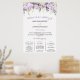 Combine o seu cartaz de boas-vindas de casamento e programa de casamento neste design. Elegantes flores de rosa roxa aninhadas em folhagens verdes criam uma bela borda superior. Todo o texto é editável para que você possa descrever sua cerimônia de casamento única. Você também pode alterar a fonte, o tamanho e a cor.