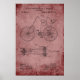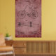Uma invenção antiga de uma Bicicleta Tandem patenteada em 1890 projetada para arte de parede em um fundo de rosa rusticado no estilo da safra.