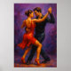 Experience the intensity of movement and emotion in this expressive dance painting featuring a couple locked in a passionate tango. The woman’s vibrant red dress and poised stance contrast against a swirling backdrop of purples and blues, while the man’s dark attire anchors the composition in dramatic tension. Bold brushstrokes and dynamic posture capture the rhythm and intimacy of the moment, making this artwork ideal for collectors of romantic figurative art, dance-themed paintings, or Latin-inspired decor. Perfect for gallery walls, living spaces, or art blogs seeking evocative visual storytelling.