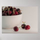 Um momento de fruta de cereja capturado numa vida estática de tons silenciados. Esta foto de cereja de arte feita por Destei apresenta uma tigela branca cuidadosamente cortada do quadro, com três cerejas vermelhas descansando em uma superfície branca em foco suave. Uma peça perfeita para adicionar calor e resistência a cozinhas, espaços de jantar ou qualquer lugar que exija uma atmosfera sutil e eterno.