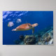 Póster Tartaruga do Mar Verde nadando com dois Batfish