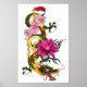 Poster Tatuagem de Dragão Chinês Verde Ousado com Lótus e