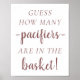 Sinalização de Contagem de Mesa de Jogo: Simples "Adivinhem quantas" (pacificadores, doces, meias, etc.) chá de fraldas ou gênero revelam a placa de mesa da festa com um roteiro divertido e casual. O clássico design inclui uma moderna camada de tipografia de citações feitas à mão. Para outras cores ou produtos correspondentes, visite a loja justFharryn Zazzle ou entre em contato com o designer, c/o Fharryn@yahoo.com Todos os direitos reservados. #bohochic #zazzlemade