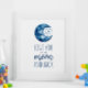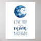 Poster de berçário azul de aquarela bonita "Ame-te à lua e de volta" para o bebê.