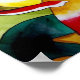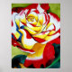 com design de arte original de pintura aquosa de Sacha Grossel de rosa de chá híbrido vermelho e amarelo contra fundo verde. Este brilhante e contemporâneo design de arte é de um grande design macro-floral de foco próximo de um motivo botânico em estilo brilhante, vívido e colorido para amantes florais e rosa.