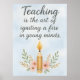Inspire Teaching is the art of igniting poster and motivate with this sky-blue watercolor design featuring a golden pencil and soft flame — symbolizing creativity and passion in education , perfect for teachers who light up every classroom.