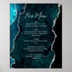 Poster Teal Blue Silver Agate Script Wedding Bar Menu