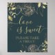 Este poster apresenta pedras e folhagem douradas num estilo de desenho de linha moderno e mínimo sobre fundo sólido. "O amor é doce, por favor, faça um tratado!" está no ouro correspondente, apresentando uma tipografia cursiva manuscrita. Esta placa é a forma perfeita de deixar os convidados do casamento ou do chá saberem onde pegar suas doces roupas.