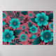 Poster Teal Floral Patterno sobre Maroon