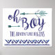 Poster Teal Oh Boy Tribal Chá de fraldas Sinal