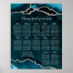Poster Teal Silver Agate Wedding Seating Chart 12 Table