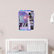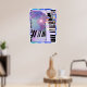 Cartaz com minha arte digital de teclados e listras em cores pastéis.
