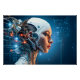 Uma renderização digital do mundo de ponta da tecnologia com dispositivos futuristas, IA e robótica.