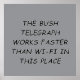 Texto que diz com humor "O telégrafo de bush funciona mais rápido que o Wi-Fi neste lugar". "Bush telegraph" é uma gíria australiana para a rede de fofocas, o que implica que a comunicação é mais eficaz do que a internet.