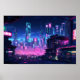 Poster Telhado da Cidade Noturna Cyberpunk