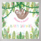 Celebrar a minha mãe com este bonitinho sinal de boas-vindas ao chá de fraldas de preguiça. Com uma adorável mãe pintada à mão e preguiça-bebê abraçando na selva. Vinhas cinzentas, flores rosa-doces e amarelas e folhas de selva verde macia decoram o fundo.