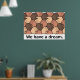 Mãos de várias cores da pele se aproximando — com o texto "Nós temos um sonho." Um design gráfico enselador de Susan EileenEvans