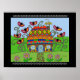 Uma cegonha traz boa sorte para esta casa de pysanka nidificando na chaminé. Segure esta poster na sua casa para lhe trazer boa sorte ou envie-a como um presente Páscoa.
