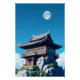 Temple bouddhiste zen dans les montagnes de l'Asie de l'Est. La pleine lune dans le ciel suggère peut-être un moment spirituel important. Les temples confucianistes, taoïstes et shintoïstes ont des architectures similaires