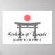 Coordenadas de latitude e longitude para o Templo Kinkaku-ji (Templo do Pavilhão do Ouro), um site da UNESCO em Quioto, no Japão. Enfeite do portão torii japonês