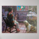 Um momento de tranquilidade entre uma criança e um animal de estimação, reproduzido a partir de uma pintura acrílica original por Ken Calvert