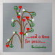 Os ramos de uma árvore nua brotam símbolos de paz e corações com pombos trazendo folhas para os membros vazios. O texto é um fragmento do famoso verso de Eclesiastes "...e um tempo para a paz..."