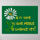 Um discurso de margarida e arco-íris pergunta "Já é hora de dar uma chance à paz?" Com toda a conversa de guerra, todo o estrondo dos tambores de guerra pelos Warmongers, é mais importante do que nunca espalhar a mensagem da paz.