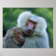 Um babuíno macho segurava e abraça um babuíno fêmea numa demonstração de afeto. O momento íntimo destaca seu forte vínculo, oferecendo um vislumbre das conexões emocionais desses animais inteligentes.