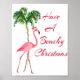 Se você tiver um Natal tropical este inverno, então você vai adorar este engraçado Flamingo de Natal. Se você sonha com a praia durante o Natal, então esta design de férias vai te manter no humor tropical. Belo flamingo rosa vestindo um chapéu de Papai Noel com palmeira decorada de Natal.