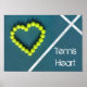 Imagem incrível do coração das bolas de tênis num tribunal com modelo de texto personalizado.