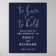 Este sinal de boas-vindas ao casamento com guião azul-marinho elegante pode ser personalizado com todas as suas informações especiais sobre o dia do casamento. Projetado por Thisnotme©