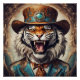 Um Tigre Sábico chamado Terence vestindo um chapéu, gravata e rugindo.