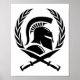 Silhueta de capacete espartano e ombros com duas espadas cruzadas e coroa ao redor do capacete.