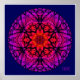 Design digital caleidoscópico de uma foto de um pôr do sol de inverno atrás de árvores nuas.