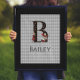 Whimsical Wonderland poster apresenta ilustrações coloridas de relevo Alice e Rainha do Coração com letras grandes / B iniciais com suites de cartas preto/ouro/vermelho em um fundo de harlequim de cinza antigo. Personalizar ainda mais com texto de nome personalizável