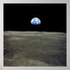 Durante uma missão na Lua em que uma nave espacial enviada pelos EUA pousou na superfície da Lua. Os astronautas tiraram esta imagem da Terra no espaço acima do horizonte da lua. Imagem do dominio público