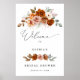 Cartaz de boas-vindas de chá de panela floral em terracota elegante e laranja queimada. Perfeito para criar uma entrada calorosa e romântica.