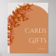 Este design de folha de terracota moderno é o design perfeito para o seu casamento outono. Use esta placa para avisar seus hóspedes, de forma elegante, onde colocar suas cartas e presentes. Confira o resto do Terracotta Leaf Modern Wedding Collections para convites coordenados, menus e muito mais