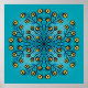 Poster de monstro-olhos com uma ilustração digital de uma criatura estranha - mistura de uma planta simétrica com folhas e olhos amarelos sobre fundo azul.