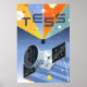 Poster do Telescópio Espacial TESS. TESS, o Satélite de Levantamento do Exoplaneta Transitório, lançado em 2018 para descobrir pequenos planetas orbitando estrelas brilhantes por todo o céu noturno. Como seu antecessor, o Telescópio Espacial Kepler, o TESS identifica exoplanetas observando pequenas pistas no brilho de uma estrela causado por um planeta em órbita. Mas ao contrário de Kepler, que focou num trecho solteiro de estrelas, o TESS está conduzindo um levantamento expansivo que engloba quase todo o céu. Durante a sua missão principal de dois anos, a TESS monitorou mais de 200.000 estrelas pré-selecionadas e detectou mais de 1.900 candidatos a exoplaneta. Em julho de 2020, a TESS iniciou a sua primeira missão alargada, durante a qual continua a monitorizar a nossa vizinhança estelar e a identificar os planetas que nela residem. Na próxima vez que você olhar para as estrelas você pode pensar no TESS - duro no trabalho descobrindo mundos anteriormente desconhecidos ao redor desses pontos de luz espalhados.