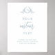 Adicione um toque de elegância à sua decoração de casamento com esta bela placa de texto personalizada com elementos caligráficos modernos de cor de vidro marinho atrativos e um delicado monograma botânico desenhado à mão que oferece um apelo sereno, chic, eterno. Quer seja um sinal de boas-vindas, cartões e presentes, na memória amorosa, ou qualquer outro cartaz que você precise, este cartaz é totalmente personalizável para ajustado de suas necessidades. Escolha seu próprio texto, nomes ou mensagem especial para tornar seu grande dia ainda mais pessoal. Adicione seu texto usando as caixas de texto modelo. Você pode editar o design e usar a ferramenta design para fazer alterações em seu estilo de fonte, tamanho e posicionamento. Monograma com iniciais em caligrafia. 10" x 8" é apenas o tamanho padrão, o sinal está disponível em muitos tamanhos. Fácil de enquadrar ou colar/grampear em MDF barato. Parte da nossa coleção "Sage Sea Glass Watercolor Monographic Wedding" com muitos elementos de coordenação disponíveis.