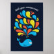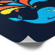 A baleia branca personalizou o poster com um desenho animado de uma baleia sorridente, espalhando espirais azuis, amarelas e laranja brilhantes sobre fundo azul escuro e texto personalizável. Esse design de crianças fofos é excelente para todas as garotas amantes da baleia que também adoram cores brilhantes e divertidas.