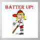 Red Text Batter Girls Softball T-shirts, canecas, cartões, travesseiros, revistas, autocolantes, ímanes, chaveiros, capuzes, e outros roupas de baseball e presentes que incluem uma menina de cabelos loira com um boné vermelho de baseball, baseball e taco!