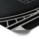 The Art Deco Tree of Life design. A stylized tree of life in silver metal with intricate details. The twisted trunk is textured and rests on a geometric base. The branches are decorated with red and green jewels, while the leaves shimmer in a bluish-green hue. The dark gray background highlights the design, which is framed by an elegant Art Deco border with geometric patterns.