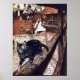 The old European walled cities are almost gone now, but there are still a few castle towns and walled cities -- and this antique illustration shows a cat winding its way around the wall of a castle. The vintage cat would keep down rodent populations around the old castles. This cat seems to enjoy his stroll on the castle wall. A great gift for cat lovers!